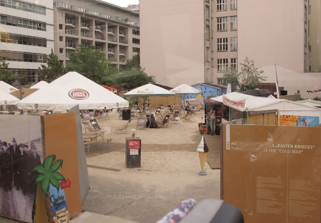 I found this so cute! In the middle of all these buildings you have umbrellas and sand, hahaha.