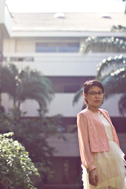 I got this dress at a bazaar some months ago but never got the chance to wear it. Matched it with this lovely jacket I got from Applerust! This jacket seems to go with so many of my outfits! Added some glasses, my gigantic watch from Aldo, and nude pumps to finish off the look. I also thought this outfit was perfect for that floral comb I made! Put my hair in a super easy updo and topped it off with the comb. :]